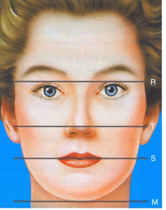 2) خط عمود برصفحه افقی صورت در حالیکه بیمار به جلو نگاه می کند.