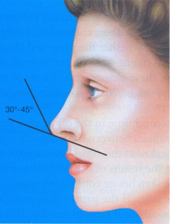 *یکی از معیارهای مهم ، میزان چرخش نوک بینی (Tip rotation ) است. این میزان را براساس زاویه بین بینی و لب (nasolabial angle ) تعیین می کنیم.